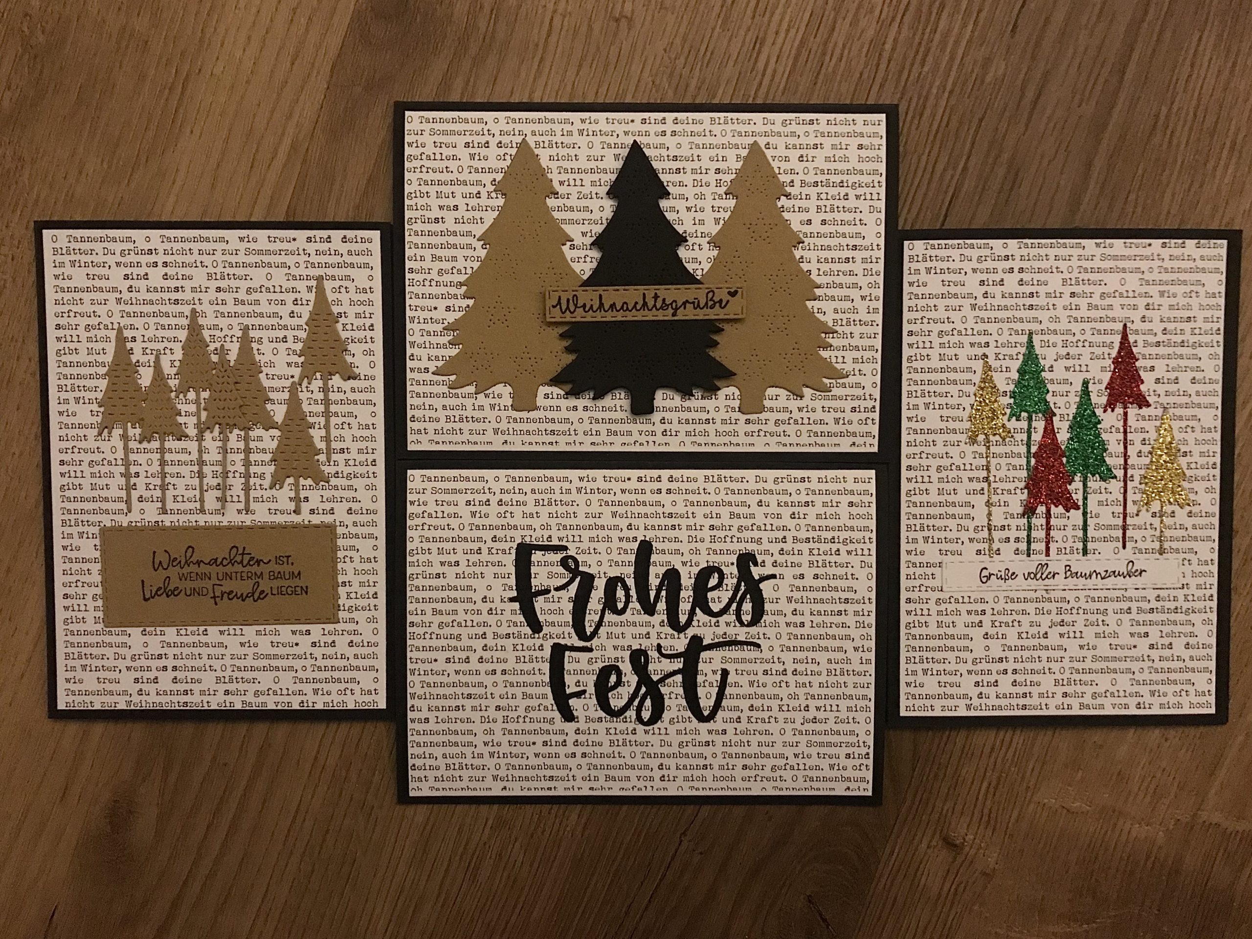 - Farbe: fröhliches Schwarz-Weiß sowie je nach Ausführung Kraftpapier und Glitzerpapier in rot, grün, gold
